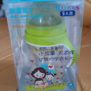 Plastic Baby Feeding Bottle with Handles, Cleaning brush & Straw (300 ML / 1 Pc)