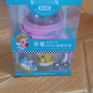 Plastic Baby Feeding Bottle with Handles & Straw (220 ML / 1 Pc)