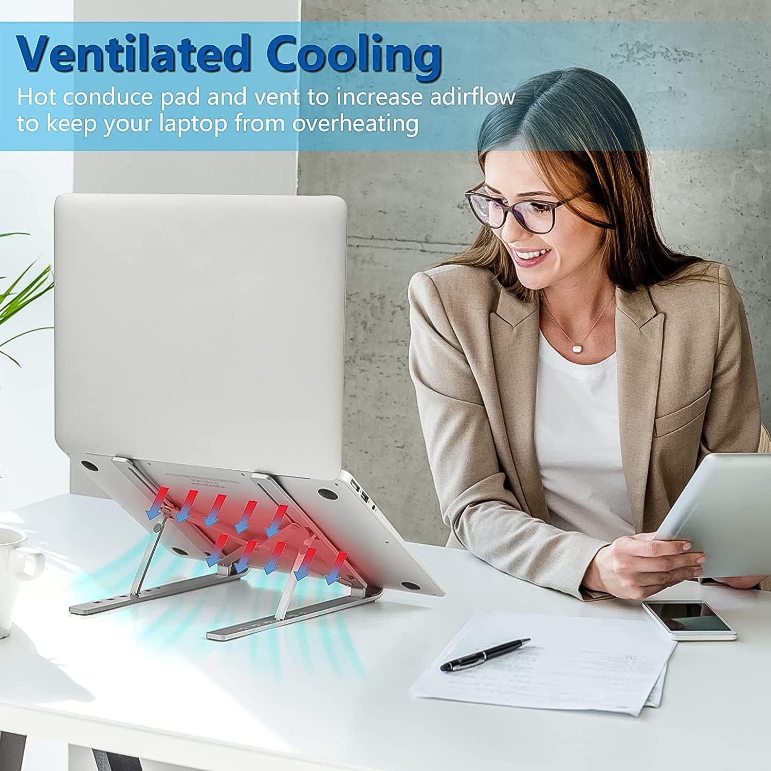Home Foldable Height Adjustable Laptop Stand Ergonomic, Overheating Protection for All Laptops (1 Pc) Description:- It is made up...