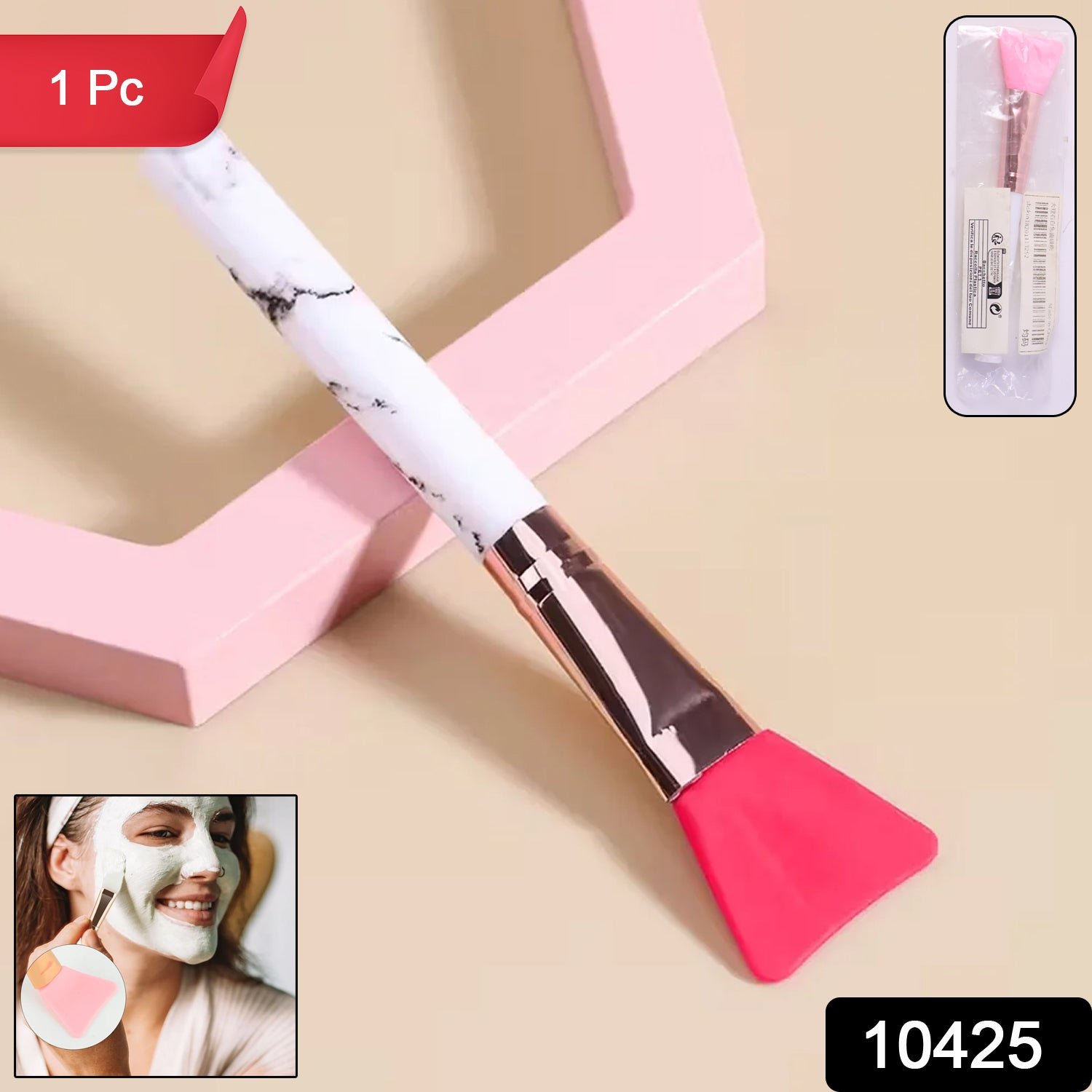 Professional Silicone Face Mask Applicator Brush with Marble Finish Handle for Smooth, Hygienic & Even Facial Mask Application (1...