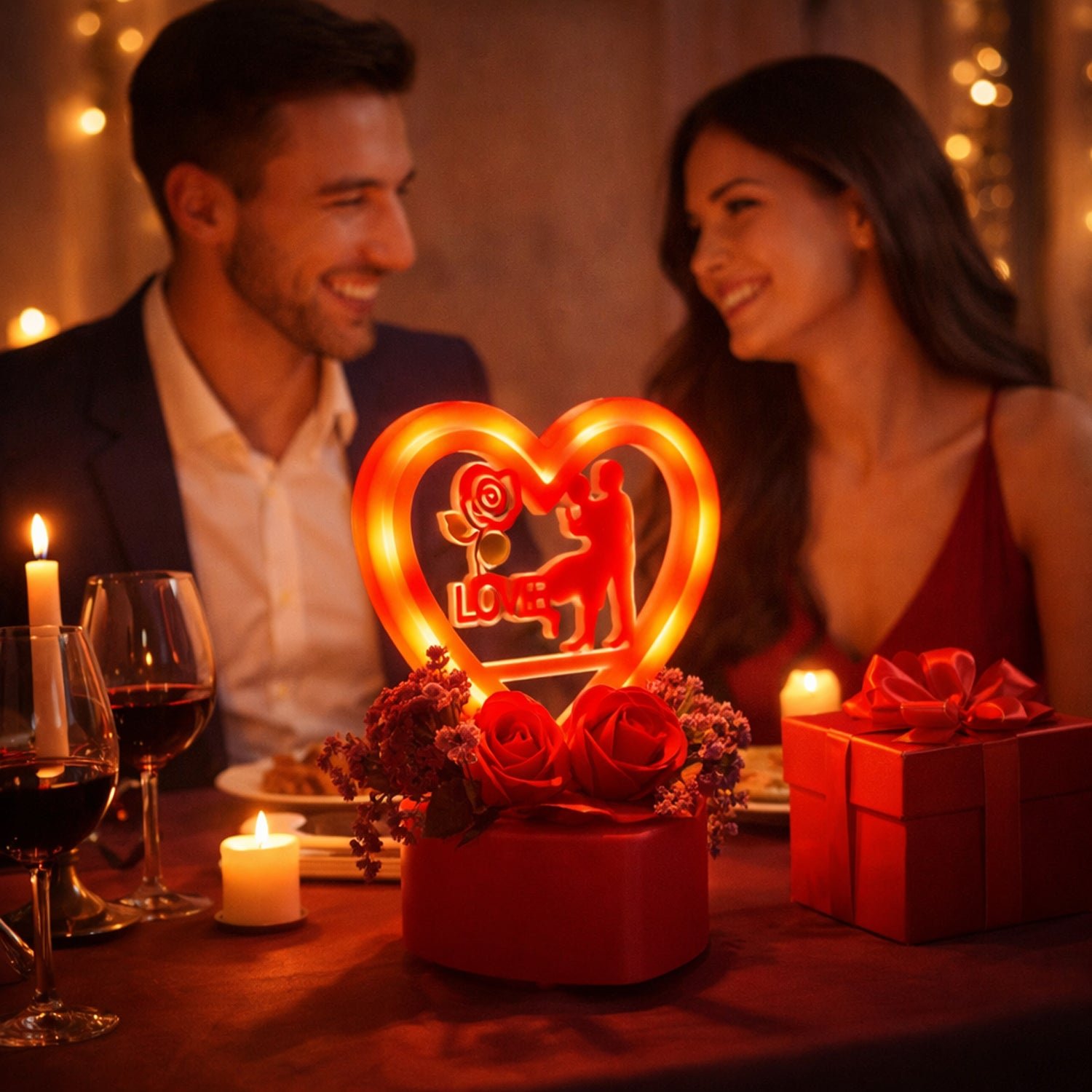 Heart-Shaped Love Couple Decorative Showpiece with Red Rose Base & Crystal Heart Embellishments – Perfect Gift for Valentine’s Day,...