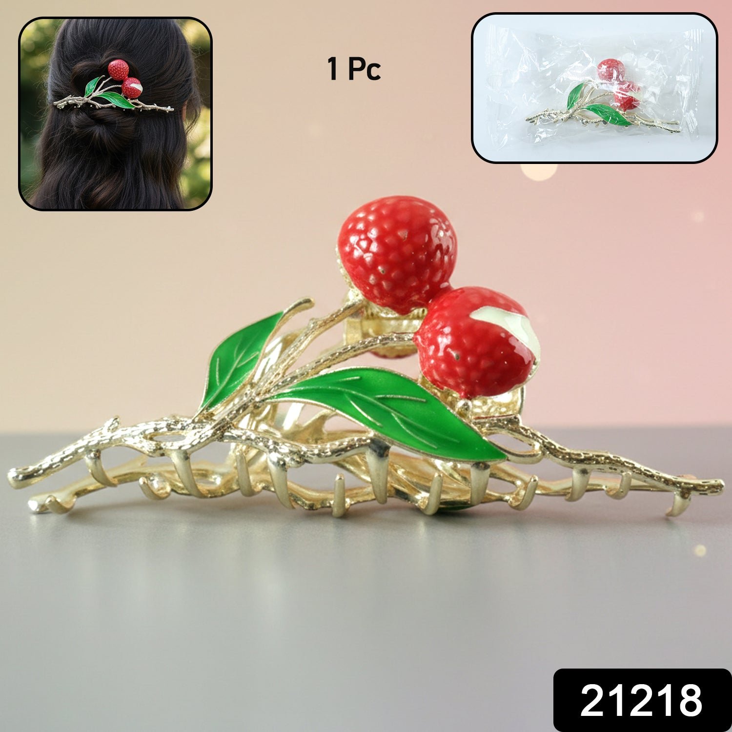 Decorative Berry Fruit Design Hair Claw Clip with Leaf Pattern for Elegant Hair Styling – 1 Piece Description :-...