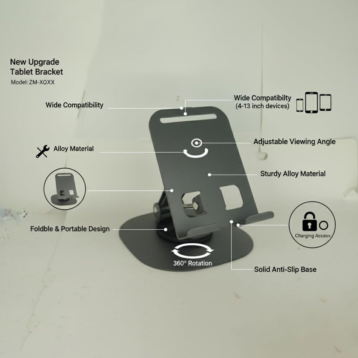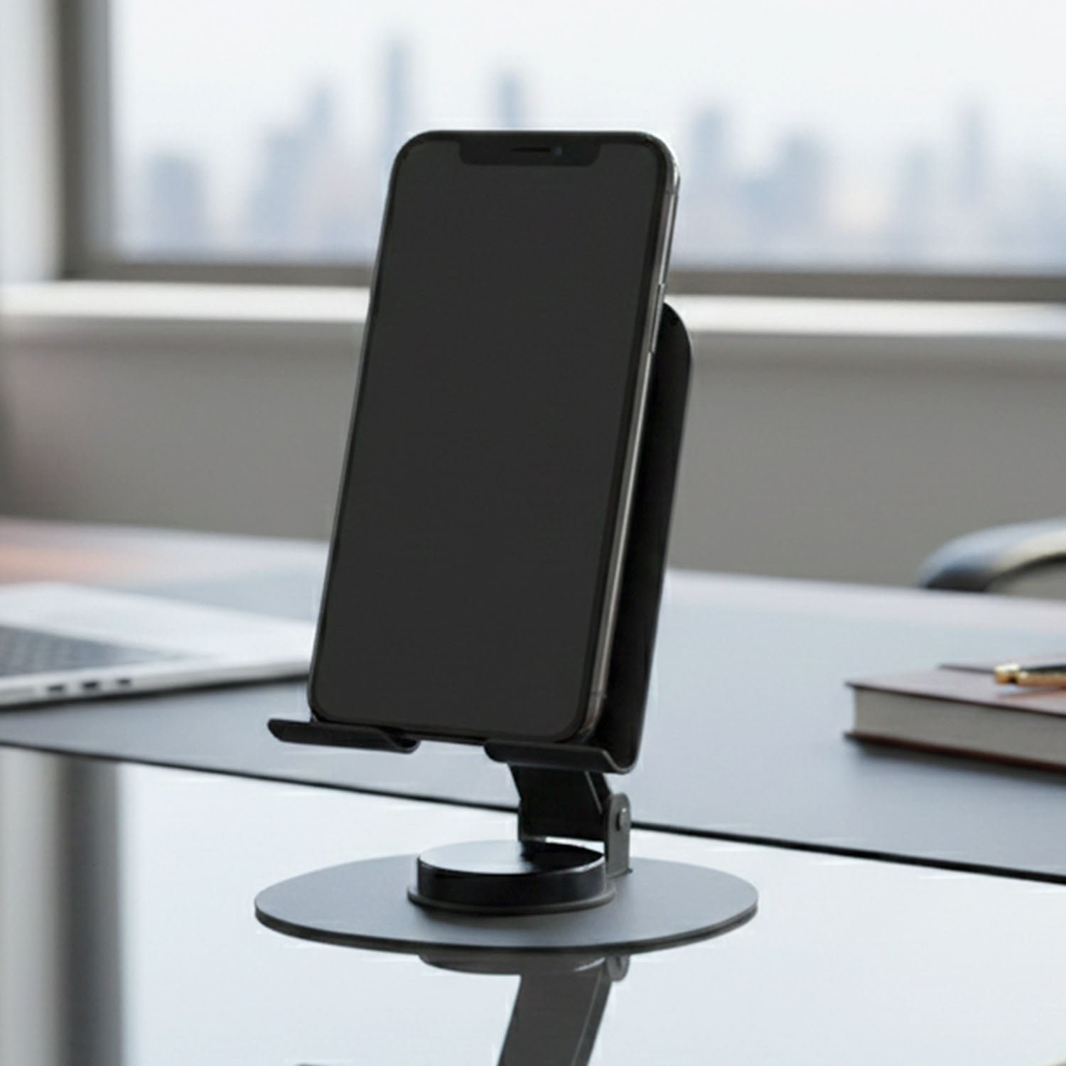 Foldable Metal Mobile Stand 360° Rotatable Mobile Stand Multiple Height & Angle Adjustments, Stable Metallic Round Base Weight of...