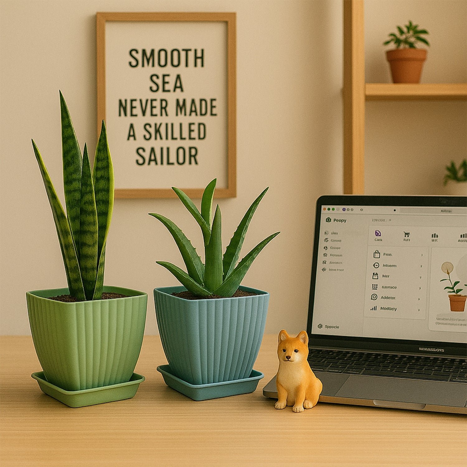Trendy Square Plastic Flower Pots Set of 5 with Matching Trays – Durable & Lightweight Planters for Indoor &...