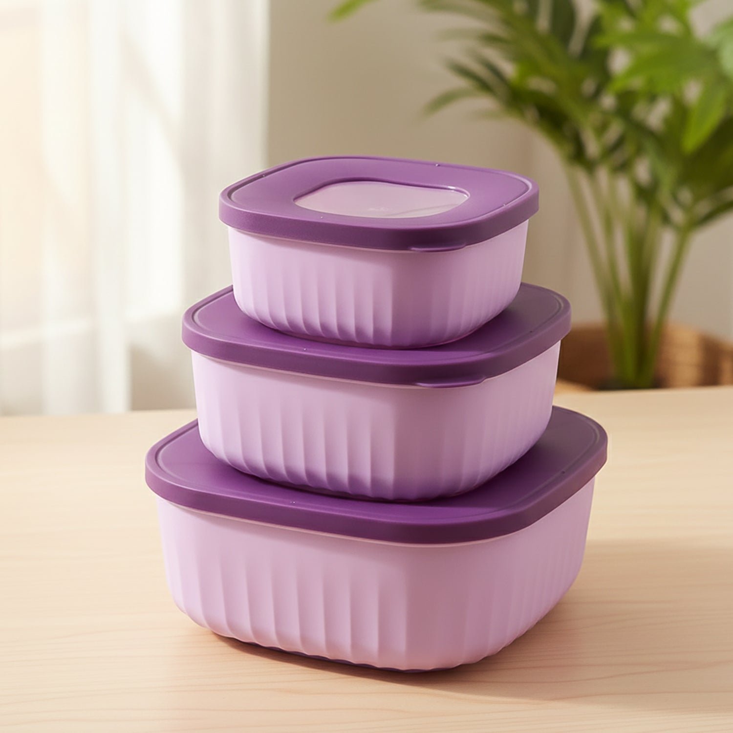 Premium 3 Piece Food Storage Container Set with Matching Leak-Resistant Lids, Stackable Square Kitchen Containers for Fridge, Pantry &...