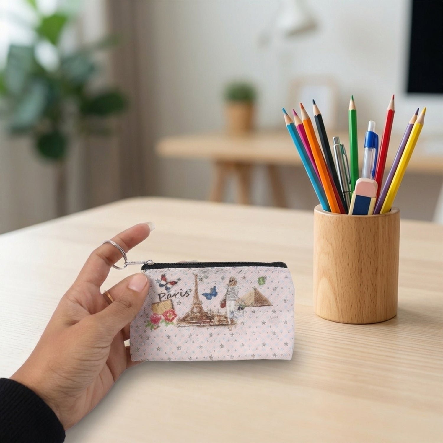 Small Paris Print Zipper Coin & Stationery Pouch (1 Pc)