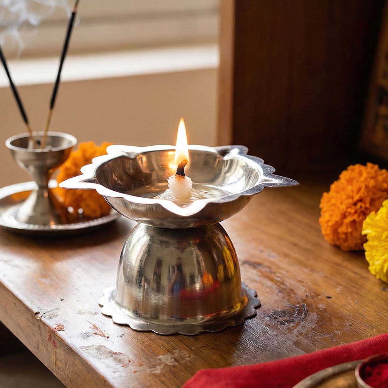 Stainless Steel Traditional Puja Diya Stand (1 Pc)