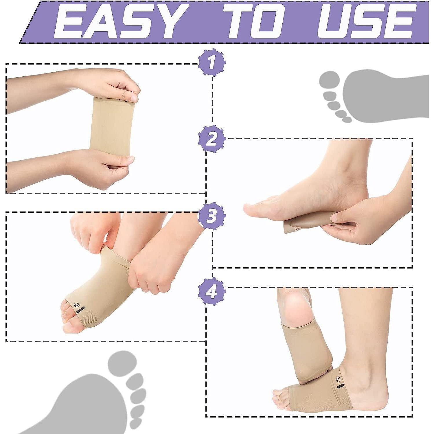Foot Arch Support for Men & Women | Medial Arch Support for Flat Feet Correction Sleeve with Cushion | Plantar Fasciitis Leg Foot Pain Relief Product | Foot Care for Orthopedic Shoes Slippers, (1 Pair)