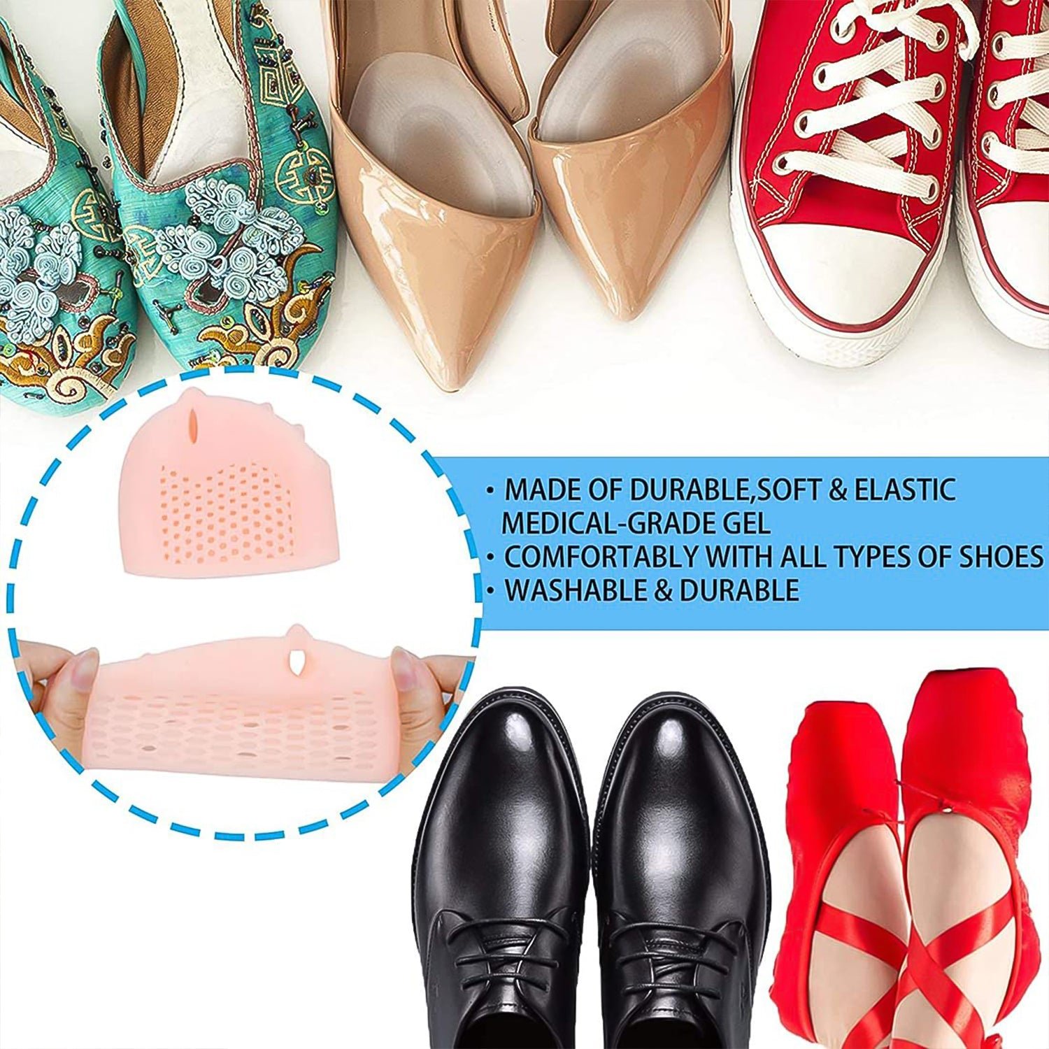 Silicone Half Toe Sleeve Anti-Skid Forefoot Soft Pads for Pain Relie Metatarsal Pads, Silicone Heel Protector foot Socks for...