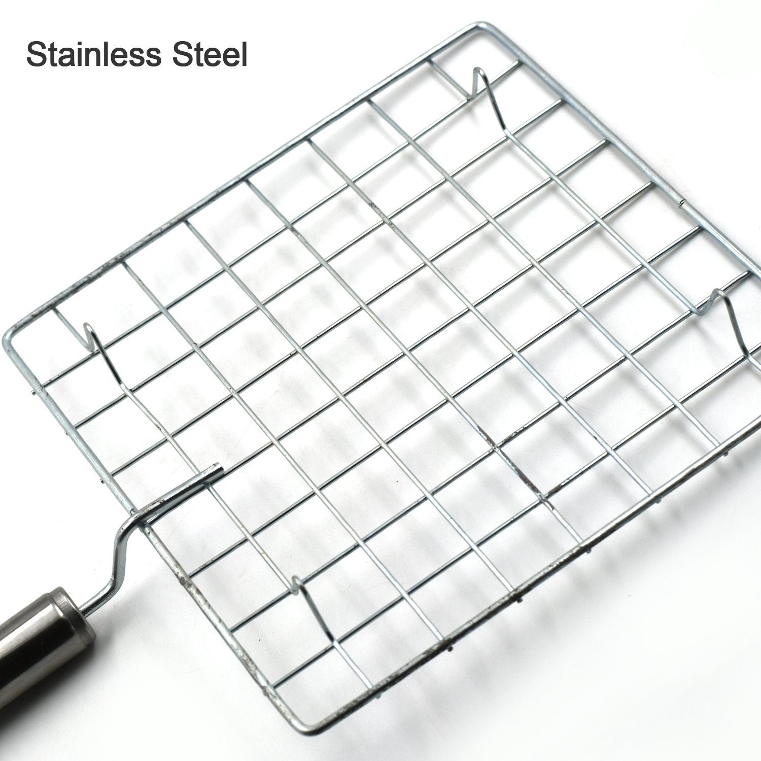 Stainless Steel Square Papad jali, Barbecue Grill Rack with Wooden Handle (1 Pc)