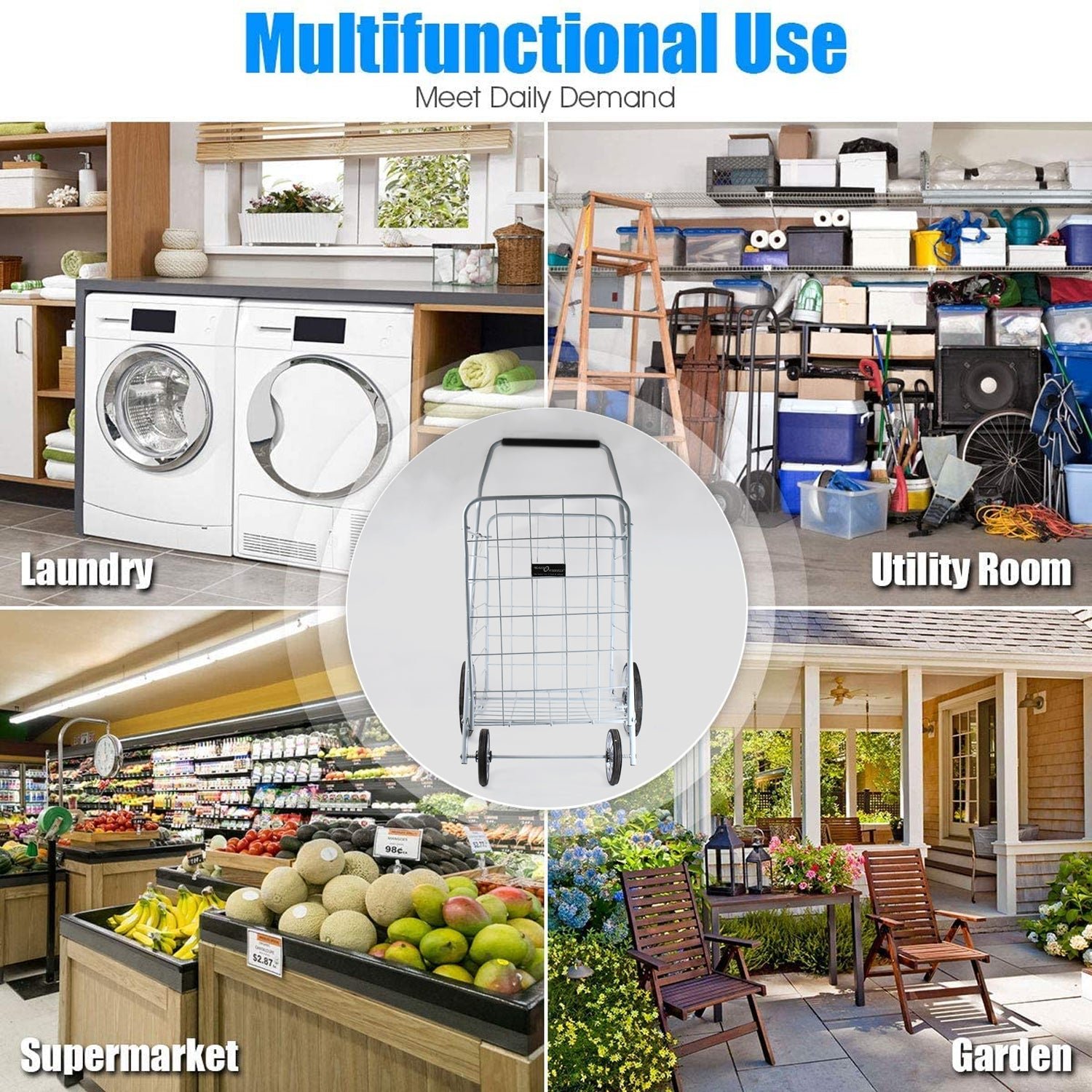 Foldable Shopping Trolley with Wheels Shopping Cart Utility Folding Cart with Dual Swivel Wheels Capacity for Carrying Goods, Grocery, Vegetables,...