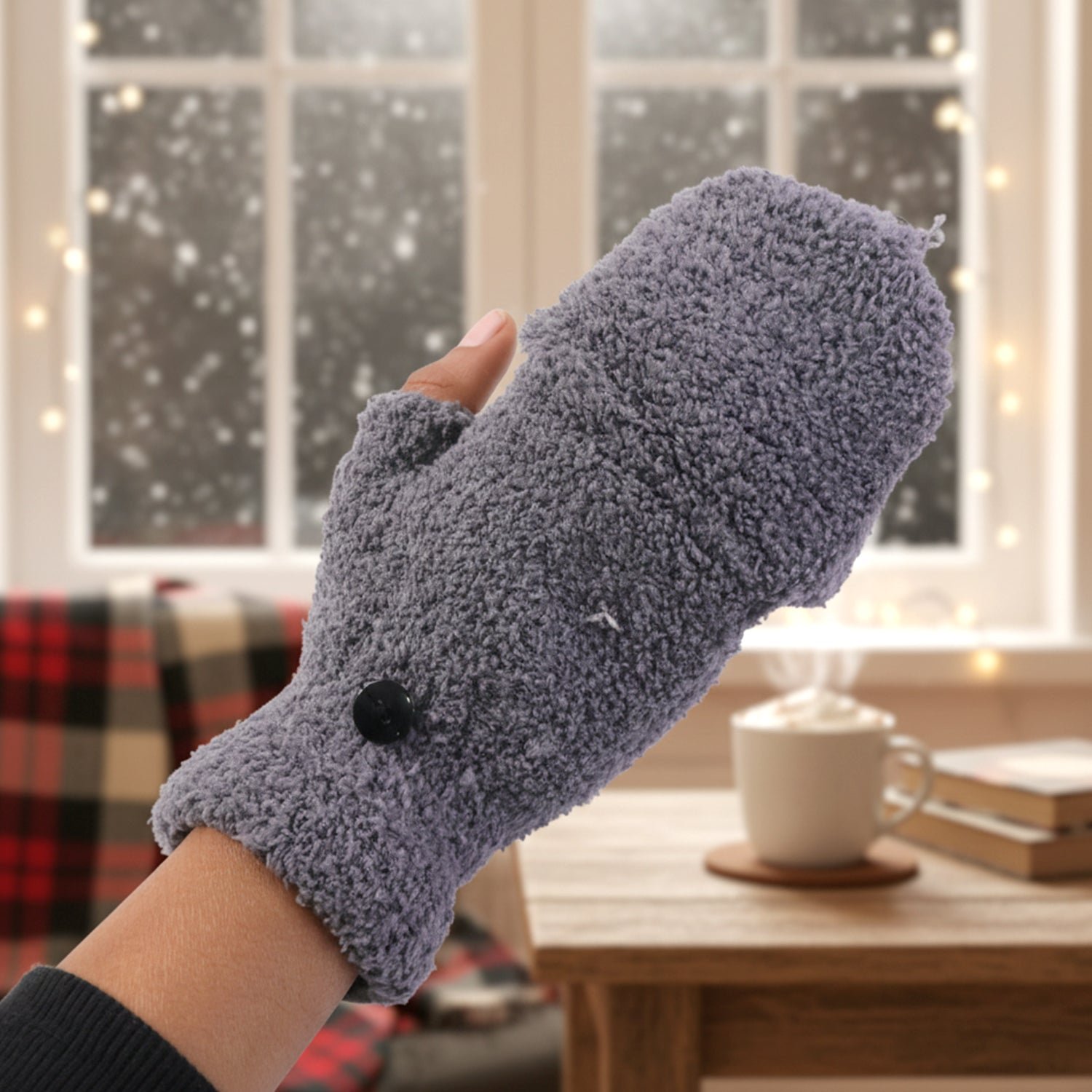 1 Pair Winter Fingerless Warm Gloves for Men & Women – Soft Fleece Hand Gloves with Button Flap Cover,...