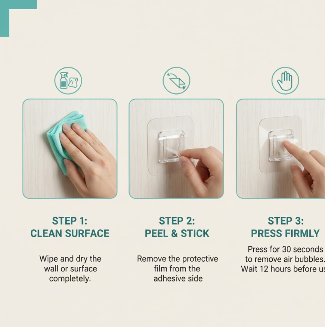 Transparent Adhesive Male Hook Used For Hanging Various Types Of Items (1Pc)