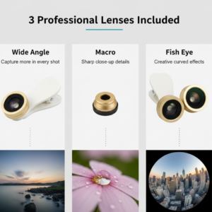 Universal Clip-On Mobile Camera Lens Set – Wide Angle, Macro & Fisheye Photography Kit with Lens Covers & Carry...