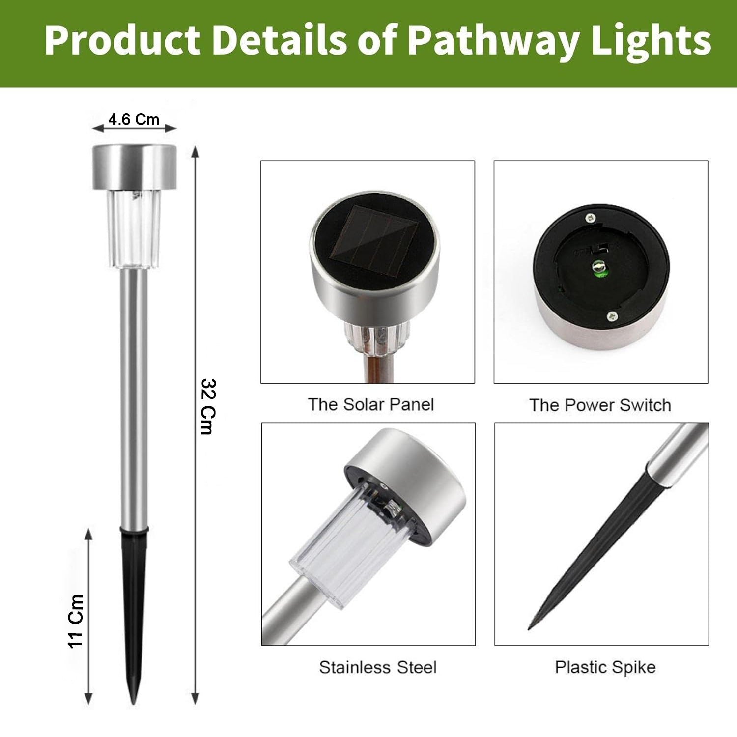 12-Piece Solar Lawn Lamp Set – Outdoor Garden Solar Lights with Stainless Steel Design – Weatherproof LED Landscape Lights...