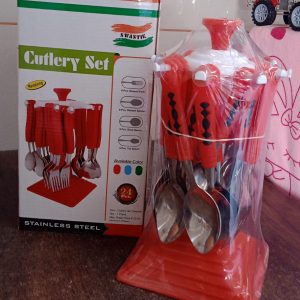 Classic Cutlery Set for Dining Table Stainless Steel 24-Piece Set With Stand (1 Set