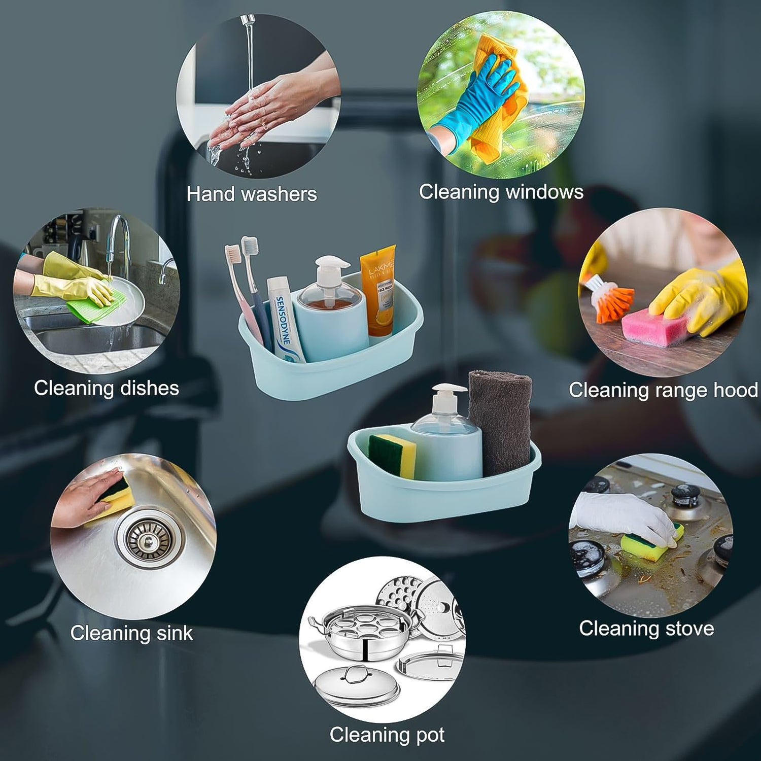3 in 1 Hand wash Liquid Soap Dispenser with Sponge Holder Storage Caddy Plastic Sponge Holder Kitchen Sink Tidy,...