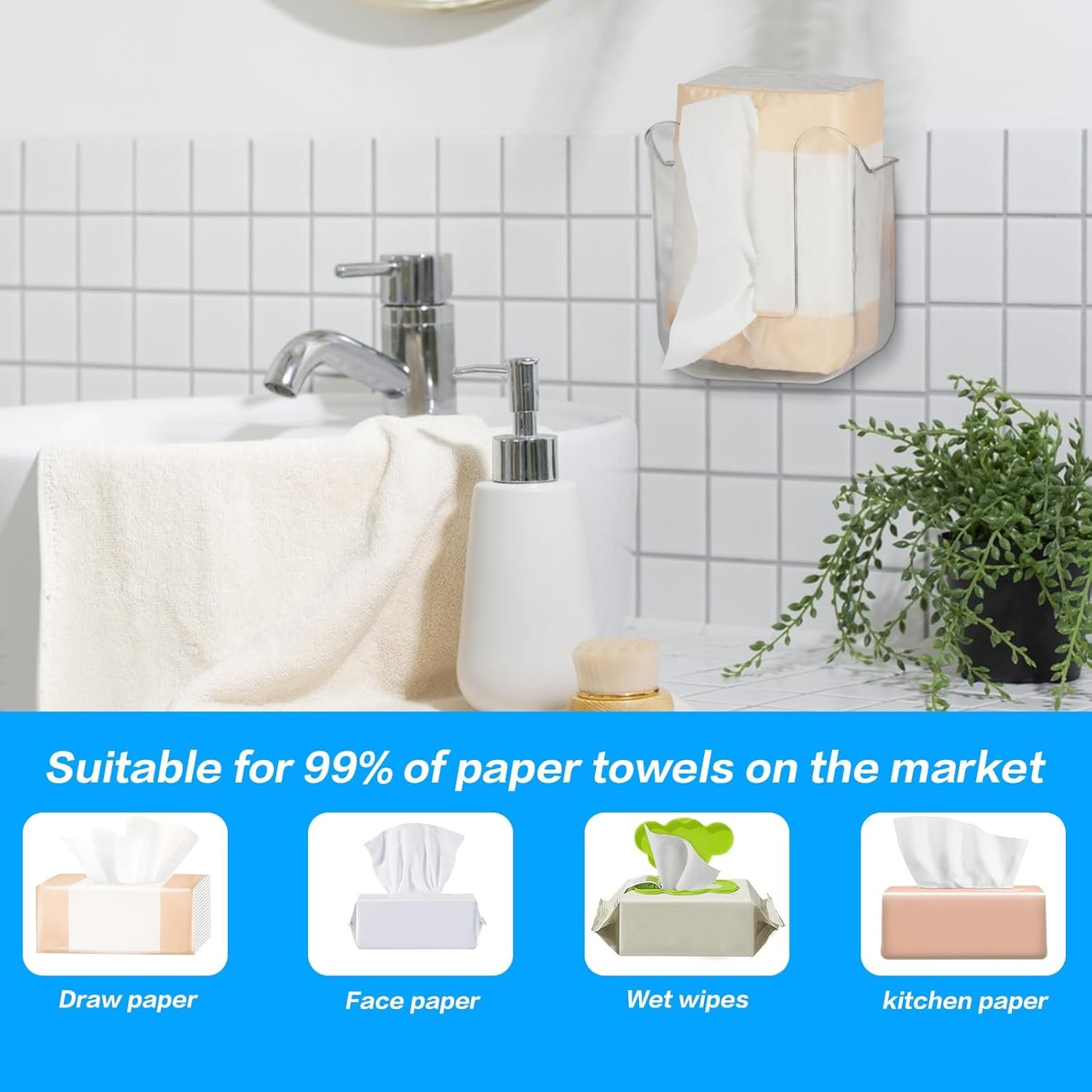 Wall-Mounted Self-Adhesive Tissue & Napkin Dispenser Holder | Transparent Front Access | Drill-Free Bathroom & Kitchen Organizer (1 Pc)...