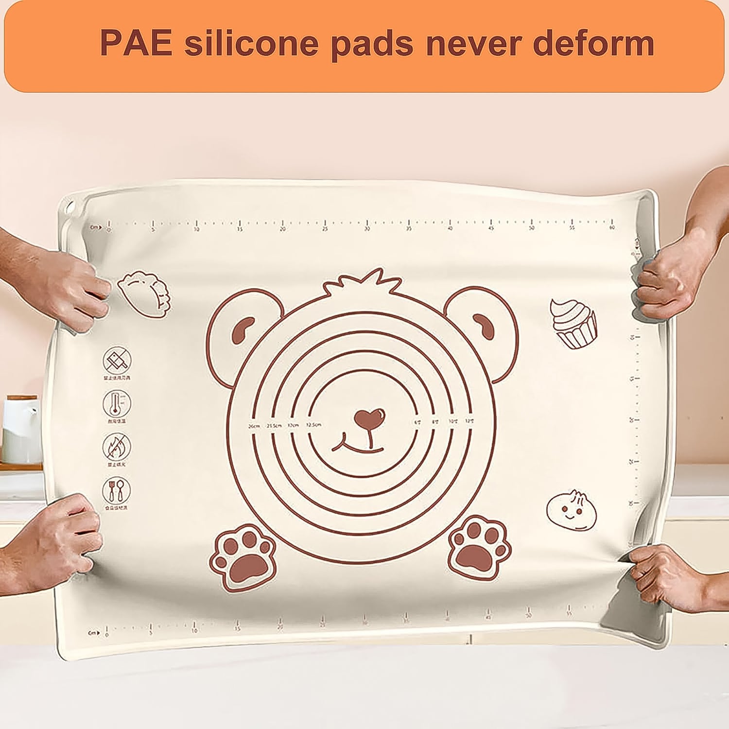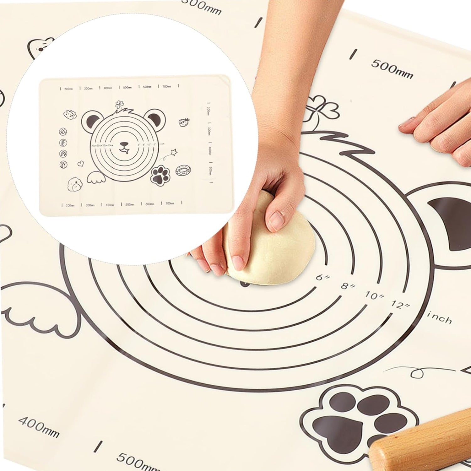 3 In1 Low Silicone Baking Mat With Wooden Belan & Cake Scraper, Non Stick Pastry Mat Sheet for Dough...