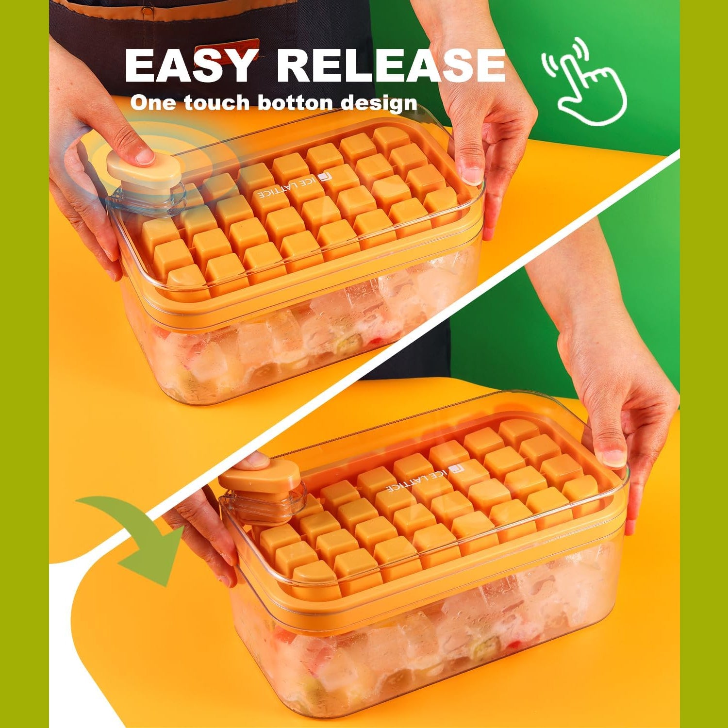 Ice Cube Tray with Lid and Bin, 32 Grid Ice Cubes Molds with Ice Scoop, Easy Release & Save...
