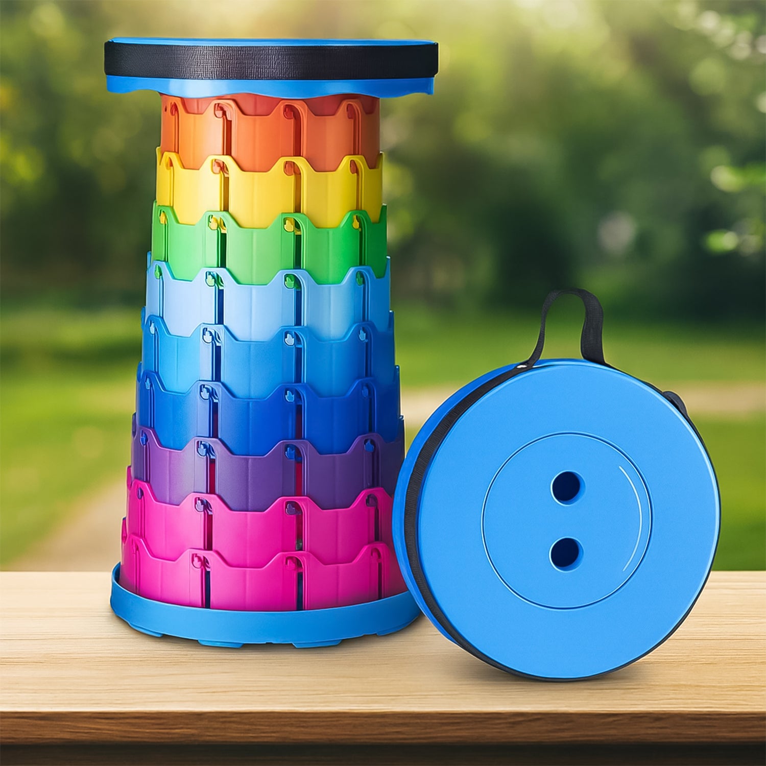 Portable Telescopic Folding Stool – Adjustable Height Compact Collapsible Travel Chair for Camping, Picnic, Outdoor & Home Use (Rainbow...