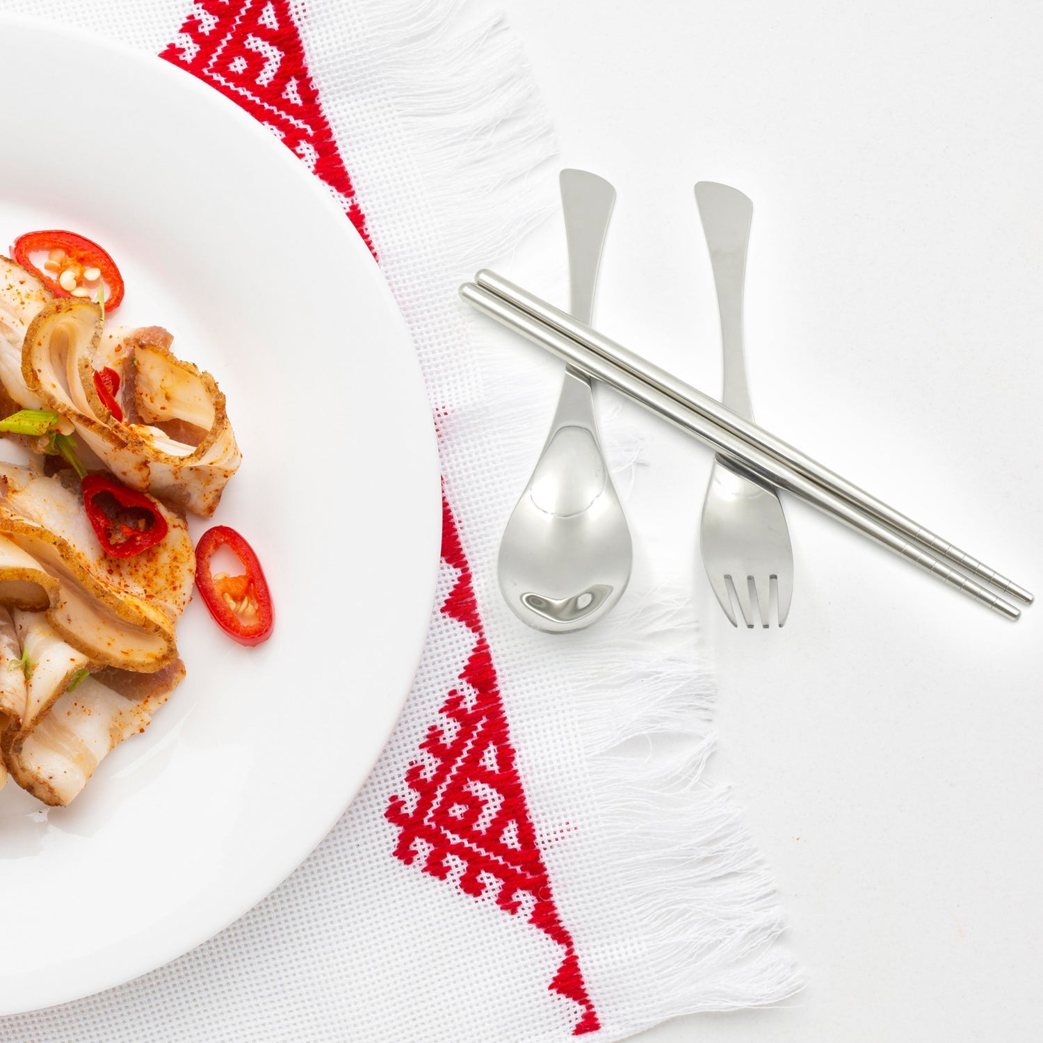 Picnic Dinner Spoon Fork Chopsticks Cutlery Tablewares Set Traveling Spoon Set High Quality Cutlery Set (4 PC / 1 Set )