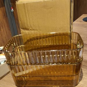 Premium Ribbed Transparent Storage Basket with Gold Handle – Multipurpose Kitchen & Home Organizer Box (2 Pc) Description :-...