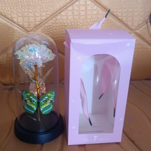 LED Light-Up Eternal Rose with Butterfly in Transparent Dome (1 Pc / Battery not Included)