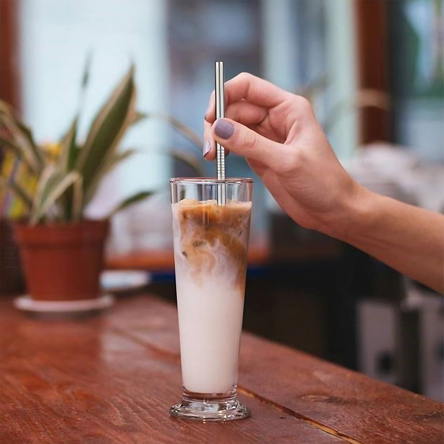 Set of 4 Stainless Steel Straws & Brush (2 Straight straws, 2 Bent straws, 1 Brush) Wide Enough for...