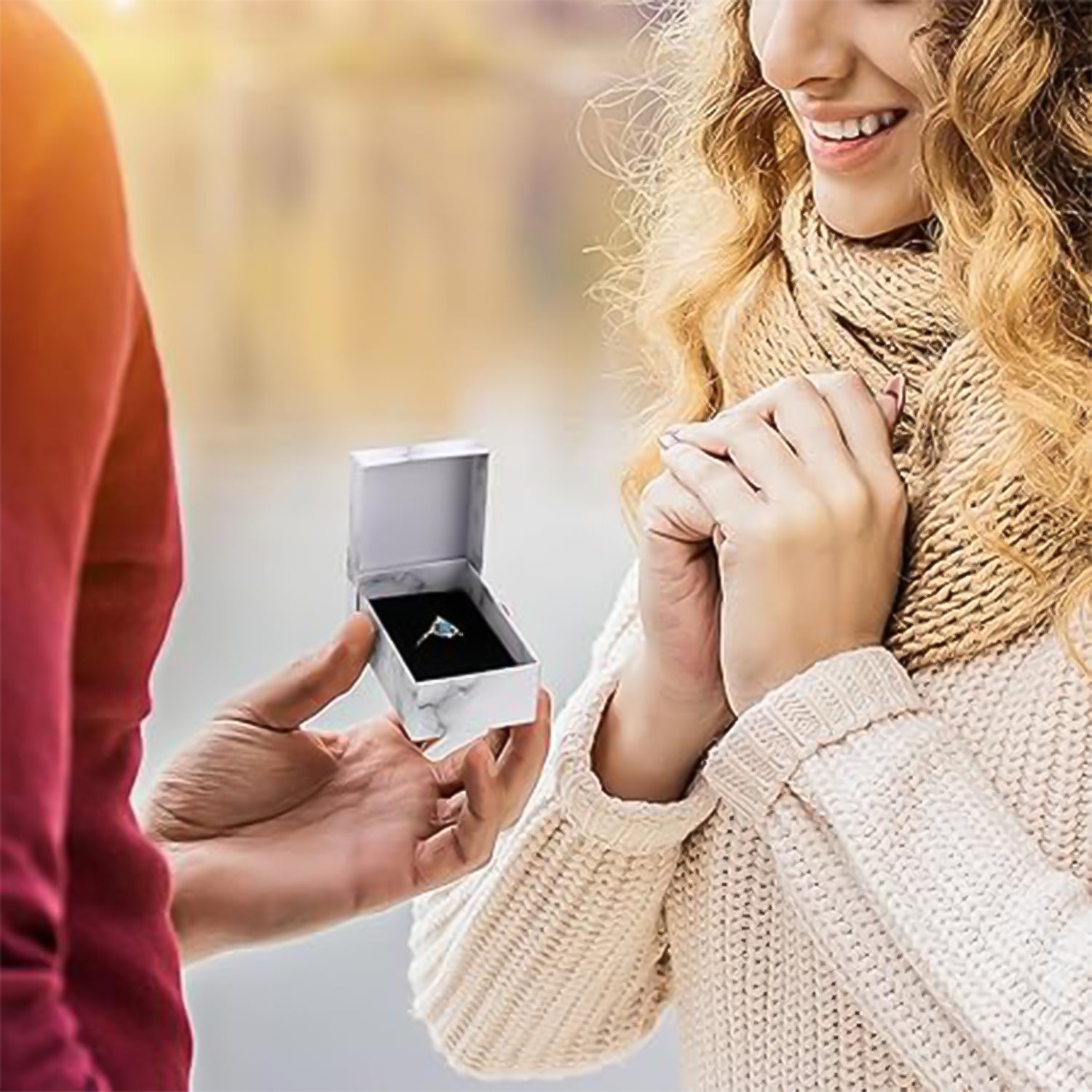 Marble Finish Empty Gift Box – 8×5 cm Rigid Cardboard Box with Black Velvet Insert for Jewelry, Ring, or...