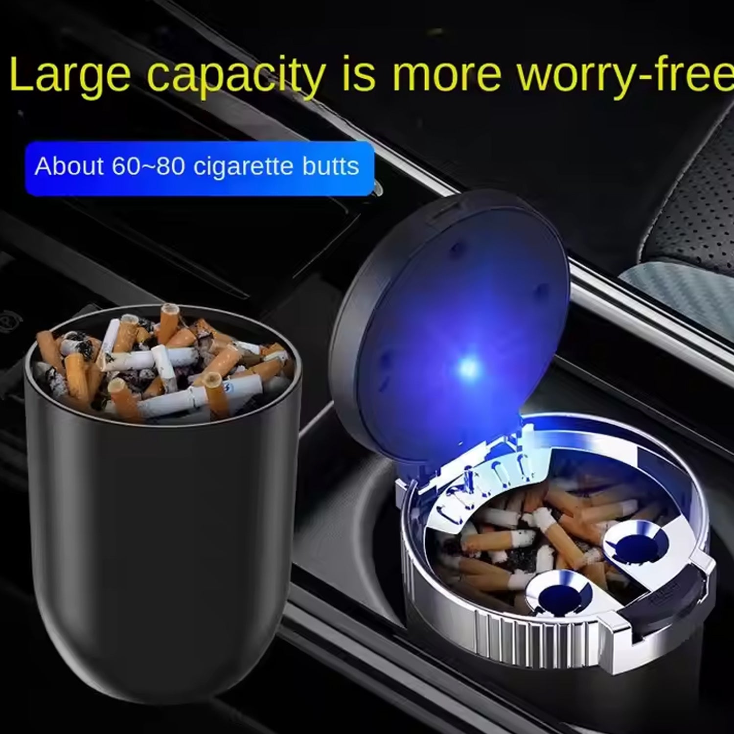 Portable Car Ashtray with Lid and Blue LED Light (1 Pc)
