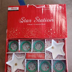 Star Station High Quality 6 Pc Glass Bowl & 2 Pc Plastic Star Shape Snack Bowl Set, perfect choice For...