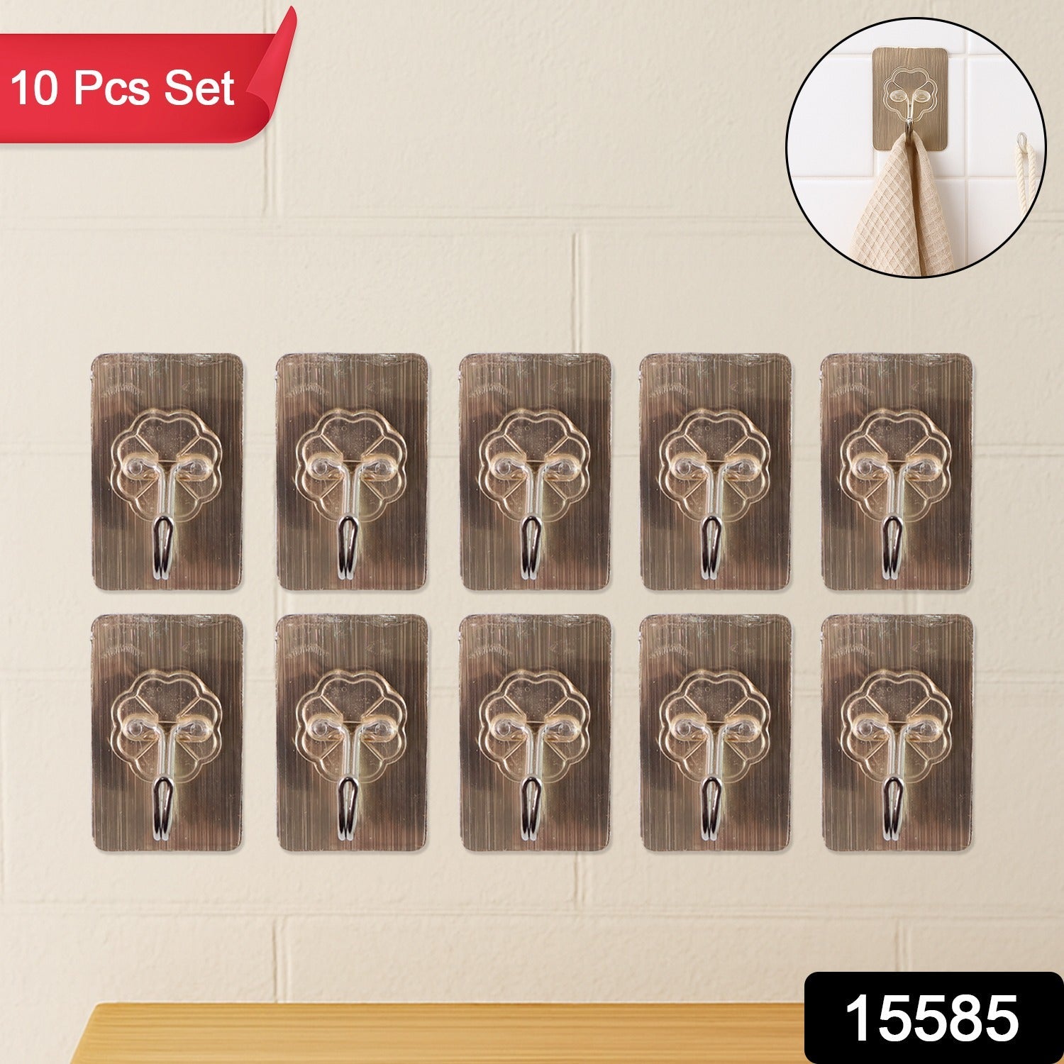 Plastic Adhesive Sticky Waterproof and Oil Proof, Wall Hook (5.5×3.5 Cm & 10 Pc)