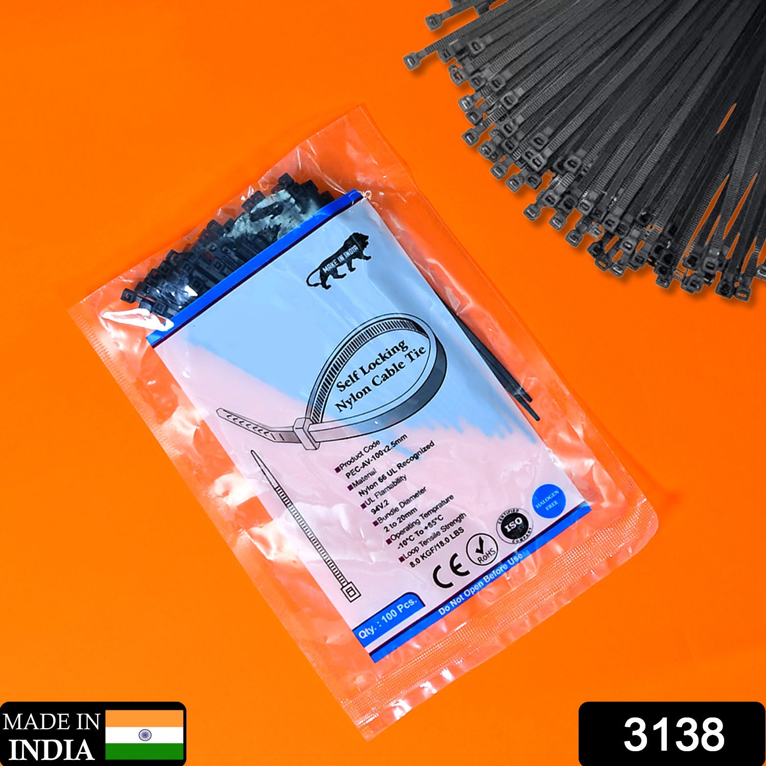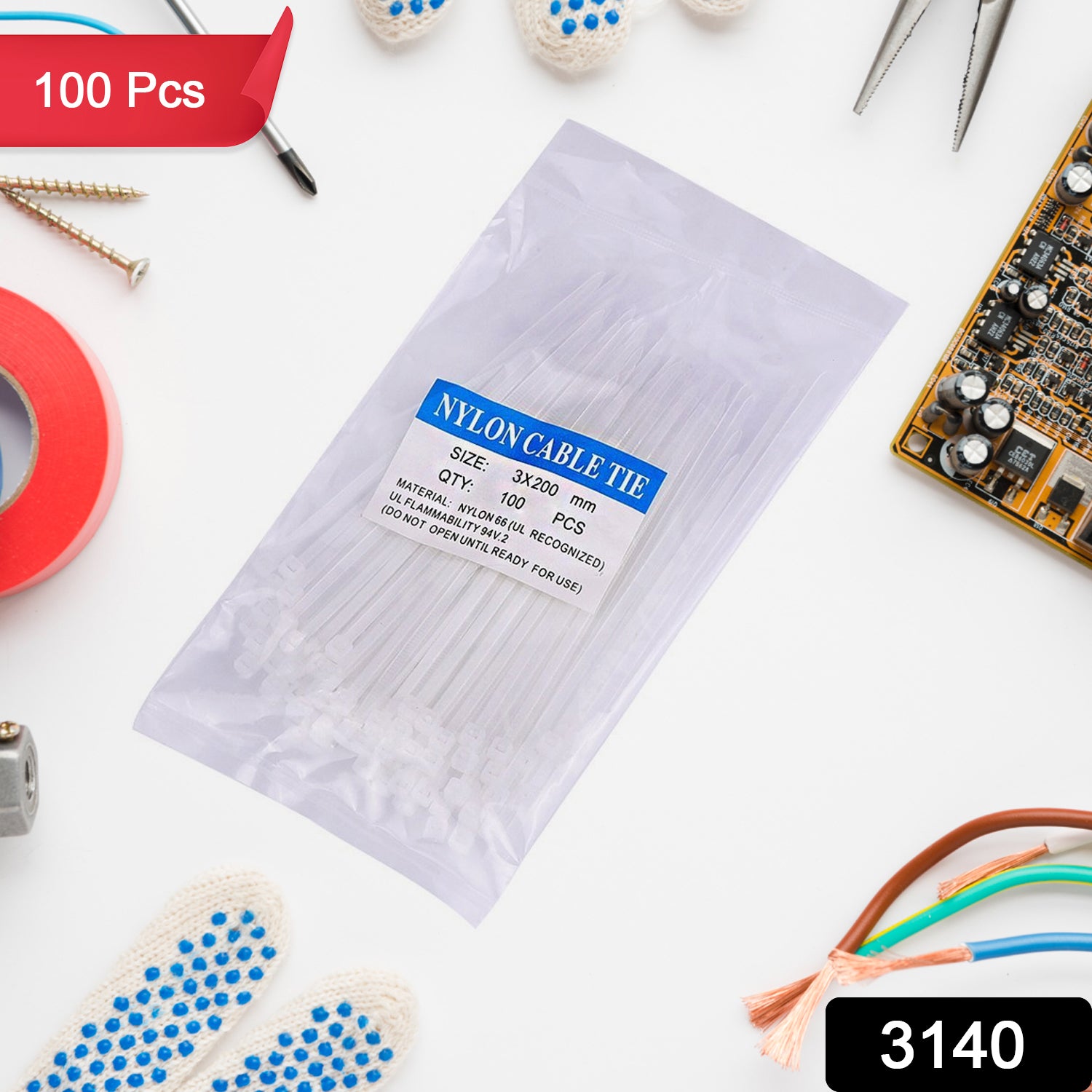 3×100 MM Nylon Self Locking Cable Ties, Heavy Duty Strong Zip Wire Tie. Pack of 100pc  Description :- Material:...