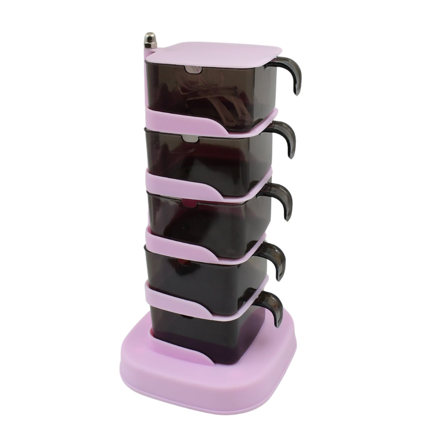 Rotating Spice Jars Vertical Rotatable Seasoning Box 5 Section / Tier With 5 Spoon (1 Set)