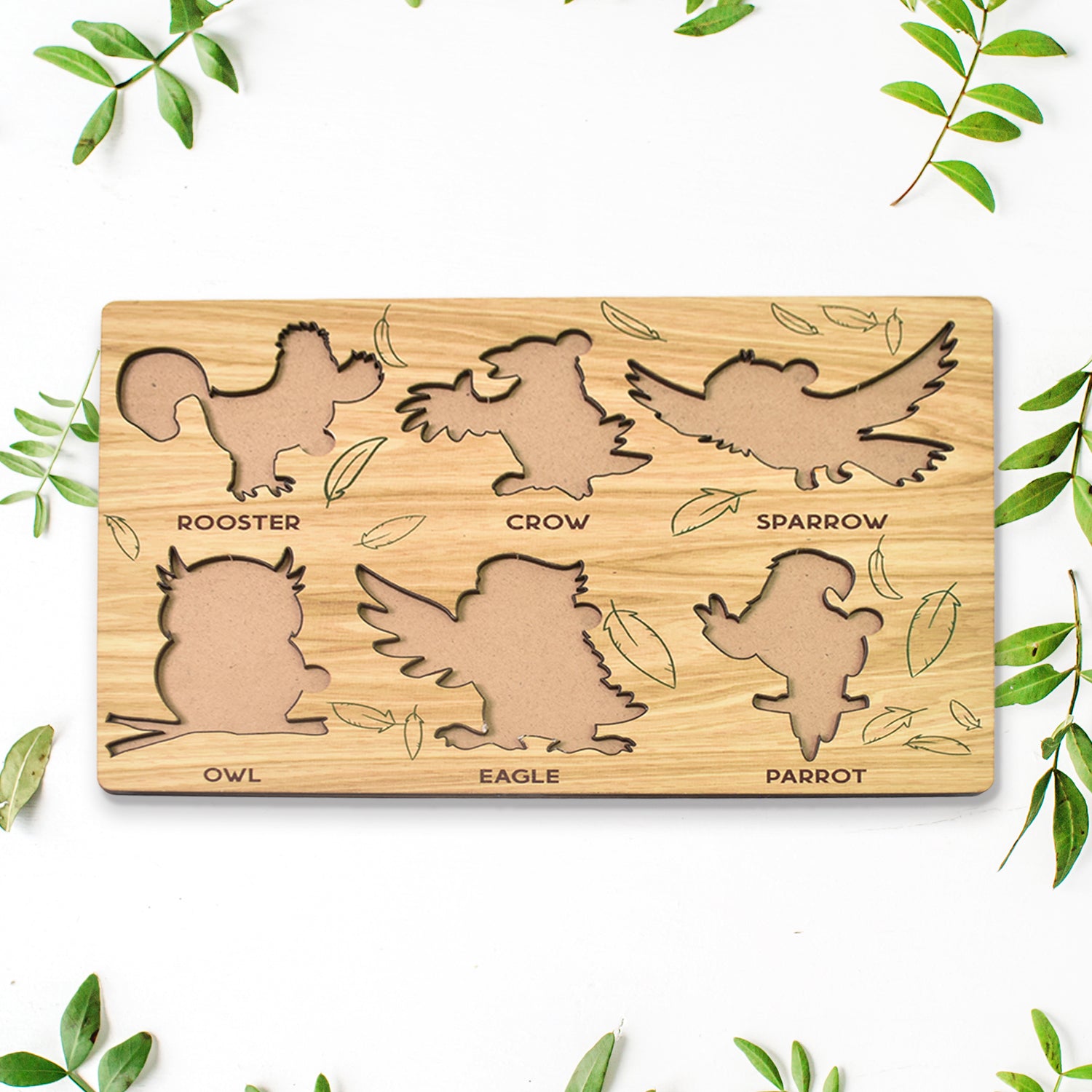 Wooden Bird Puzzle Learning Educational Board (1 Set / 28×20 Cm)