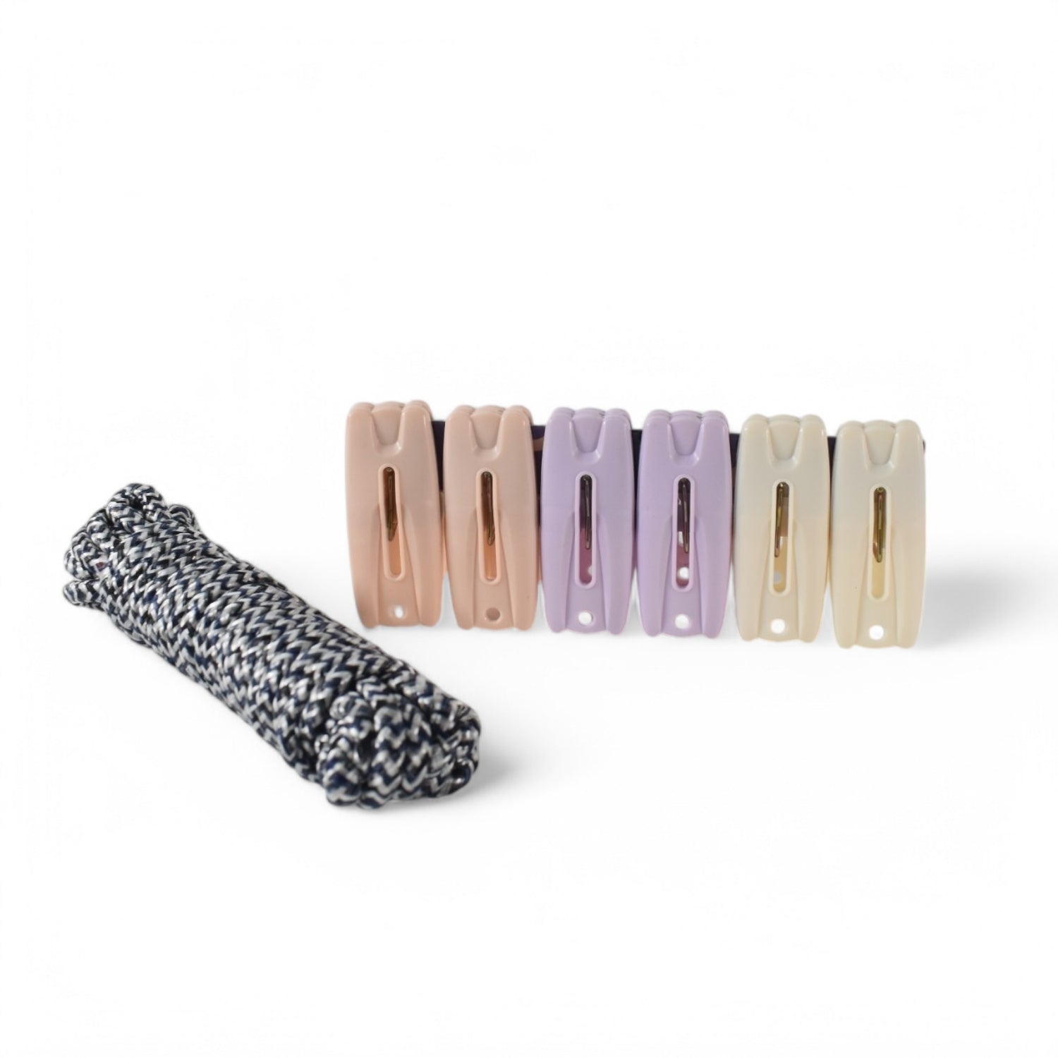 Clothesline Portable Travel Clothesline Adjustable with 2 Plastic Hooks (10 M Approx / 1 Pc)